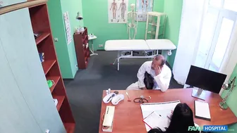 Description: The doctor had been going through some personal problems so I told him I would take a lot of his work for the day. He came in to thank me and he looked very upset. I tried to comfort him and before I knew it we were locked in a deep embrace. The doctor always knows how to turn me on and my panties were instantly soaked as I got on my knees and drew his cock into my mouth. We were both so turned on that he pulled me up and bent me over the examining table and slid his cock deep inside me. We hadn t been fucking for long when there came a knock on the door which stopped us in our throes of passion. It was my next patient that we had forgotten all about. We got dressed quickly and the good doctor ushered her in. This beautiful woman walked in complaining of bad back but all I could think about was how frustrated and horny I was feeling. I needed satisfaction and this beautiful patient of mine was going to have to be the one to give it to me. I got her on the examining table and began my seduction. I caressed her body gently and I could tell she was getting turned on also. She was soon naked on the table and I had my fingers sunk deep into her tight wet pussy. We made love to each other in a variety of positions and I made her cum several times with my sexual skills. But the whole time all I could think of really was the doctors cock. When he burst in to ask us what we thought we were doing I wasted no time in getting on my knees and turning this healing session into a threesome.