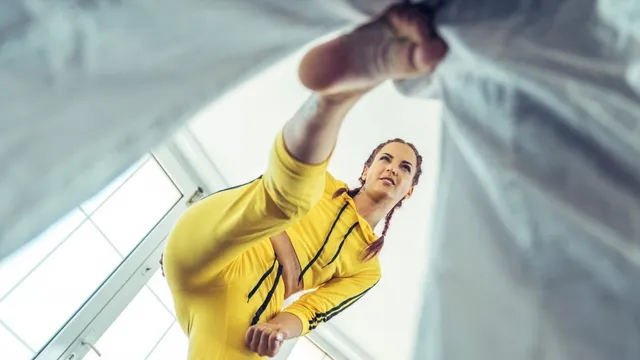 Description: When Lyen Parker decides she wants to learn how to fight she signs up for Kung Fu lessons with sensei Mike Angelo. Mike begins the lesson by assessing Lyen s innate abilities. The coach grabs a training pad and tells Lyen to strike it. When she strikes it with minimal force Mike goads her on and eventually tells her to kick him. Mike collapses in pain and feeling guilty Lyen checks on his injured member. As she rubs it better Mike asks Lyen to kiss it better and she gives him a blowjob then Mike worried about if it still works asks her to sit on it. Lyen bounces her big ass up and down on Mike s dick taking him deep in her pussy and they get a better workout than any martial arts session alone can provide.