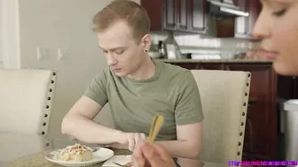 Description: Alex Jett and Ryder Rey are a newly blended family and Alex cannot get over how hot his stepsister is. He can t help but perv on her. Today Alex accidentally on purpose drops his fork for an excuse to slide underneath the table as they are eating. Once he s down there he uses his cell phone to snap photos of Alex s panties beneath her miniskirt. Although Ryder has let Alex s perviness go so far she can t ignore the latest transgression. She insists that Alex delete the pictures from his phone. When Alex pushes back Ryder makes him a deal that if deletes the phone she ll give him a challenge If Alex can bust a nut that goes three whole feet Ryder will fuck him. Alex has until tomorrow night to prepare. Alex agrees and deletes the photos. The next day Alex receives a package containing a huge squirting dildo that he thinks is guaranteed to give Ryder the show she s looking for. Ryder almost finds him out but Alex manages to hide the package. When it comes time for Alex to take on Ryder s challenge he secretly puts the fake dick on and gives it a few strokes for show. He claims that he needs some help from his stepsister so Ryder flashes her titties and even gets down in a crouch three feet away to receive Alex s cum shot. The dildo delivers soaking Ryder in what she thinks is Alex s jizz. She finds herself unbelievably turned on something she didn t expect from her stepbro. He has met the conditions of her challenge so she s happy to dish up her end of the bargain immediately. Peeling her shorts down she gets into bed and wiggles her ass to invite him to fuck her in doggy. Alex isn t about to deny himself that pleasure. He discreetly puts the fake dick away and shoves himself balls deep into Ryder s greedy twat with the real deal. Ryder doesn t seem to notice that the dick is different even when Alex rolls onto his back and lets Ryder suck her juices right off his shaft. She is thrilled with what Alex has from deep throating it to riding it in cowgirl and reverse cowgirl. For his part Alex lets Ryder have her way with him as he squeezes that big ass and then slips a finger into her anus. That drives Ryder wild! She rolls onto her back and spreads herself wide open for Alex to stick it in her and get her off one more time. Throwing her head back in pure bliss Ryder rides out her orgasm and then watches with greedy eyes as Alex pulls out to cover her belly in a cum shot of his own.