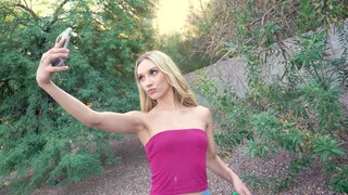 Description: Jazmin Luv puppy ran away unexpectedly and she s in absolute tears over missing him. She doesn t realize that while she was taking some selfies on her phone a hot guy was playing a trick on her and swiped her pup. He pretends to be the hero here and she rewards him with a taste of her sweet pussy!