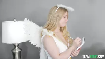 Description: Damons life is spiraling out of control. Hes kind of a hot head and things seem to be getting worse and worse for him. Unknown to Damon he has a guardian angel on his side. Kylie is a petite sexy little angel who hasnt been doing very well at her job. Despite her best efforts Damon still seems to fuck everything up and if he continues this way hell soon face great peril. Damon calls out of work sick and curses his boss as she fires him. Kylie knows she needs to act now if shes going to save him. While Damon rests in bed attempting to kick his cold Kylie appears out of nowhere and tries to console him. Bewildered Damon picks up the tiny chick and flings her outside of his bedroom. But Kylie reappears immediately. This time shes lying in his bed wearing skimpy white lingerie. Shes pretty hot Damon realizes. Kylie explains that he needs change in his life and the solution he needs right now is sex with an angel. Damon has no objections to that and starts caressing his guardian angels body. Kylies tits are magnificent. Supple and bouncy fitting perfectly in Damons large hands. Damon continues to admire Kylies body moving his hand down to her pussy and rubbing her clit. Its a fantastic experience Damon never imagined hed get to fuck an angel let alone one as fine as Kylie. Damon moves his cock to Kylies mouth so she can blow him. The sweet angel wraps her lips around the tip of his dick and jerks him off. She works herself up to taking in more of his dick fitting more and more of the shaft into her mouth over time. Its the best blowjob Damons had in a long time and he can feel the healing process beginning to take hold. He fucks Kylies perfect tits. Kylie pushes her tits together so that they push tightly against Damons cock. Damon moves back and grabs Kylies waist. Hes ready to fuck and in this moment he wants Kylies pussy more than anything in the world. Taking her feels even better than he imagined. Its as though her pussy were custom made for his cock. He fills up Kylies pussy entirely and despite being a petite chick shes able to take all of Damons cock with ease. Damon rubs her clit while he fucks her. He wants to make sure his guardian angel is enjoying this as much as he is. The juices from her dripping wet pussy cover Damons cock and balls and as they move through various positions Damon can feel himself getting closer to climax. Damon wants to finish on Kylies face so he fucks her tits hard until he cant hold his load any longer. He pumps his load shooting hot ropes of cum onto Kylies sweet face. She smiles and breathes hard reveling in the pleasure of their exchange. Damon just may have the best guardian angel in the entire universe.