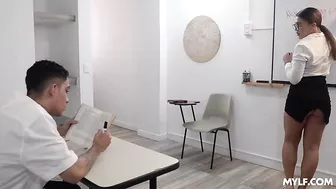 Description: Tommy is having some trouble focusing in school. Hes constantly anxious about his tests and is worried his focus will cause his grades to drop. Luckily for him his teacher Kloe is full of surprises and she knows how to help guys with their focus. Her methods are a little unorthodox but what else would you expect from a stunning Latina milf Her loca idea is to get Tommy to cum because if he can get his mind off of blowing a load hell be more well equipped to focus in class. The mamacita gets right to sucking Tommys cock instructing him to lie on his back while she puts her mouth to work. Her plan is working like a charm and Tommy can already feel his focus improving. He pumps his hot teachers pussy full of cock letting his shaft slide in between her dripping wet lips. She rides Tommy and plays with her magnificent tits enjoying her lesson just as must as Tommy. When he can no longer hold his load Tommy cums in Kloes mouth filling it up with a hot sticky mess.