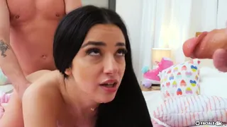 Description: Vanessa spices up a vlogger duos outdoor shoot teasing them in a rideshare before delivering a double dose of pleasure topped with facials.